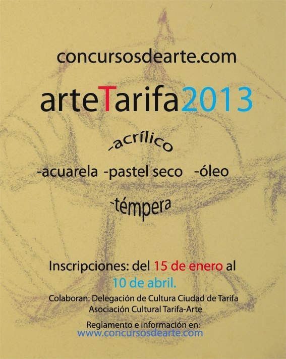 La pintora Isabel Romero es una de las promotoras de esta interesante iniciativa artística que nace de un grupo local con claras pretensiones internacionales. Se trata del denominado artetarifa2013 cuyas bases generales se recogen en la web www.concursosdearte.com. El concurso de pintura está dirigido a autores semiprofesionales con interesantes premios que se extienden hasta un número de diez.