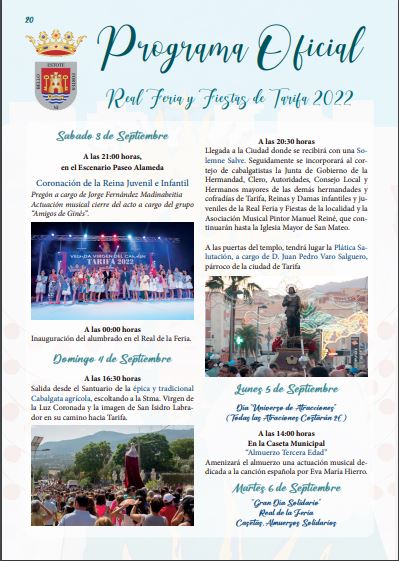REVISTA DE LA REAL FERIA Y FIESTAS DE TARIFA, del 4 al 11 de septiembre del 2022